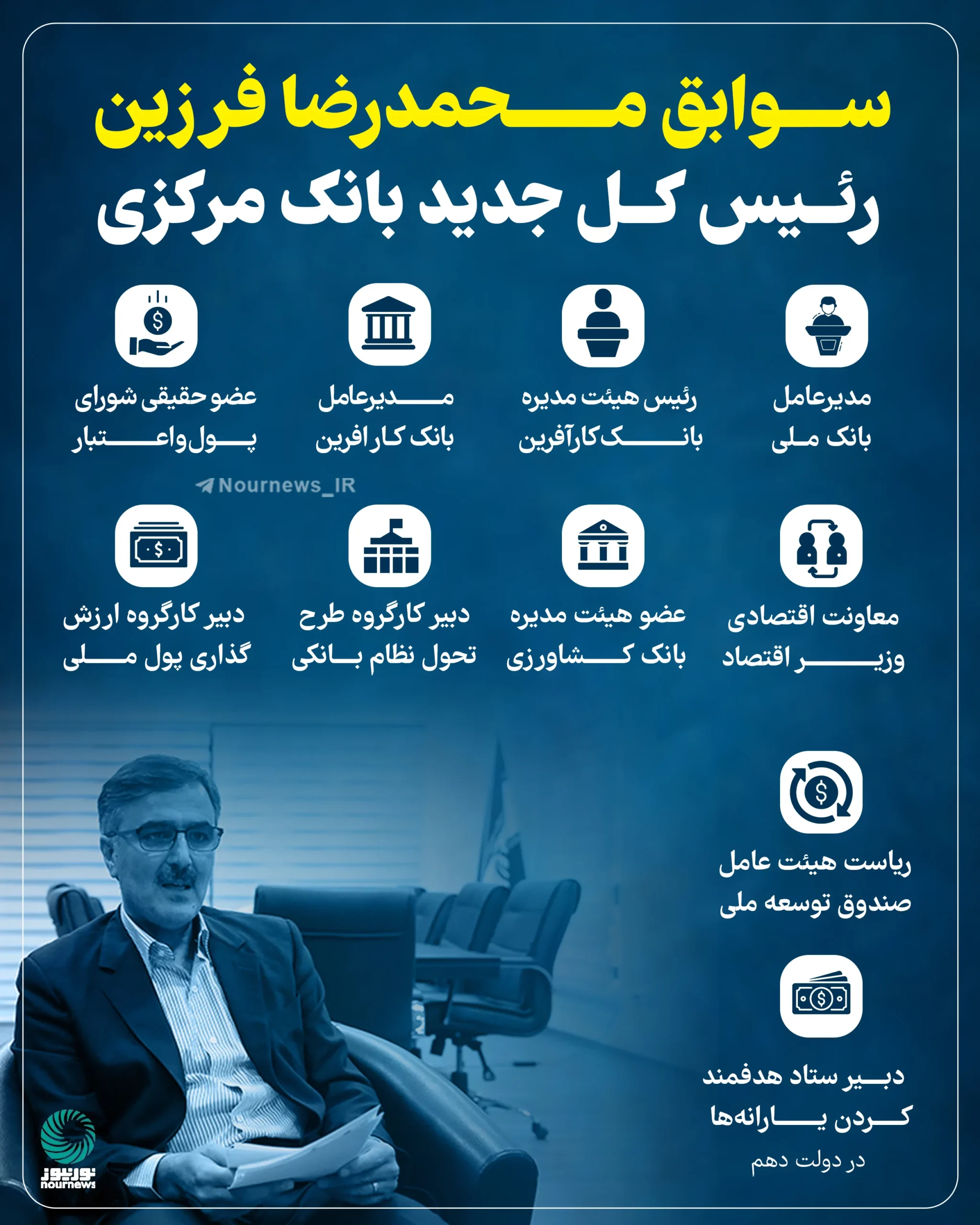 - مدیرعامل بانک سینا: سابقهای طولانی در مدیریت بانکداری خصوصی.